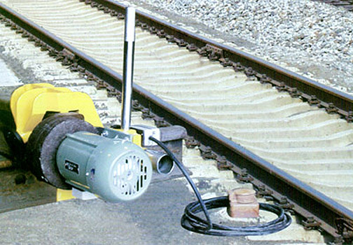 鋼軌焊接前,可用鋼軌端頭打磨機(jī)對鋼軌端頭的橫斷面進(jìn)行精確打磨。該種打磨機(jī)在各個方位均有良好的平衡性,所以操作起來非常容易。馬鞍型夾軌鉗把打磨機(jī)固定在被磨削鋼軌端部的軌頭上。磨頭的移動是由一個手柄來控制的,其移動的范圍處于垂直于鋼軌的橫斷面內(nèi)
